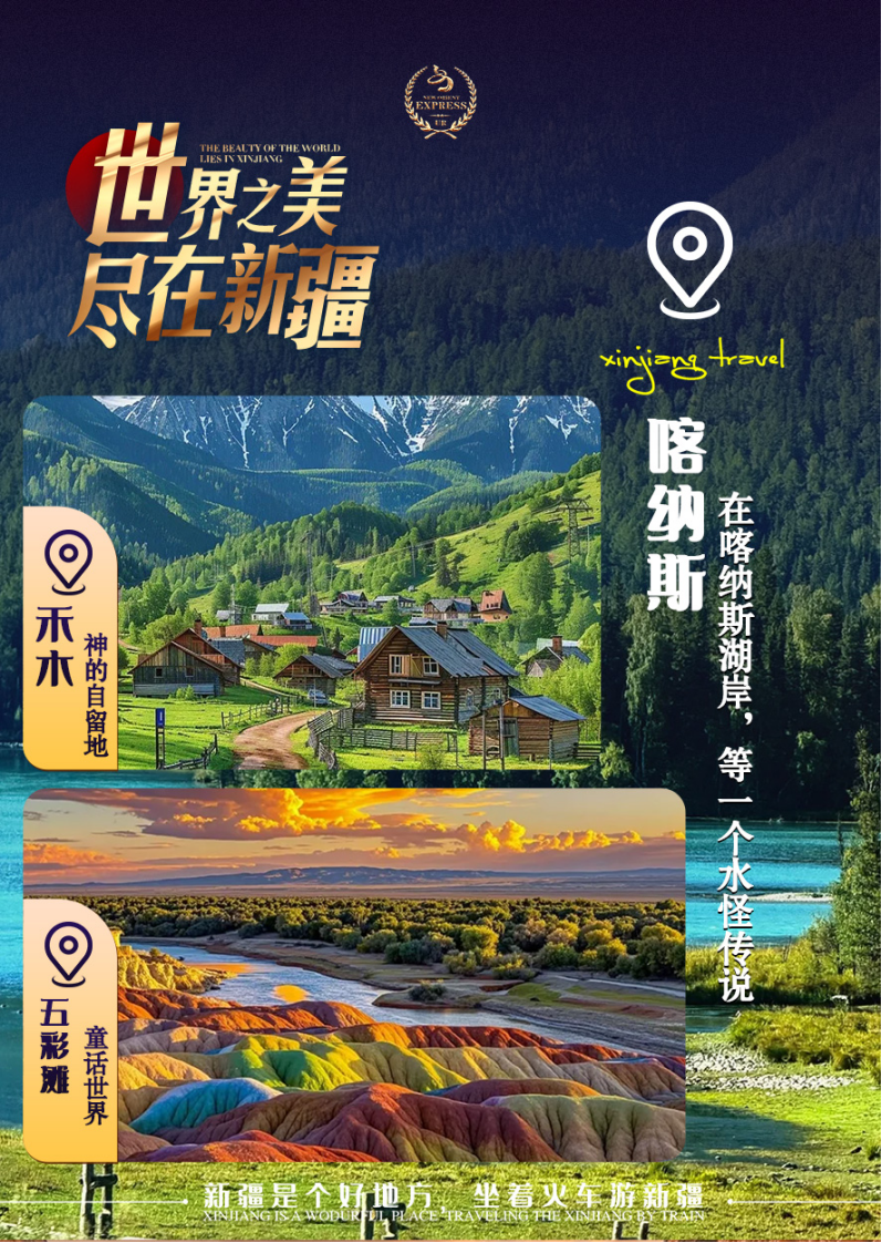 上午乘坐专列前往富蕴,沿途欣赏准噶尔盆地东部景观。首次登上最新打造的新东方快车,观赏车上的各项歌舞演出及新疆知识讲座,参加欢迎酒会。