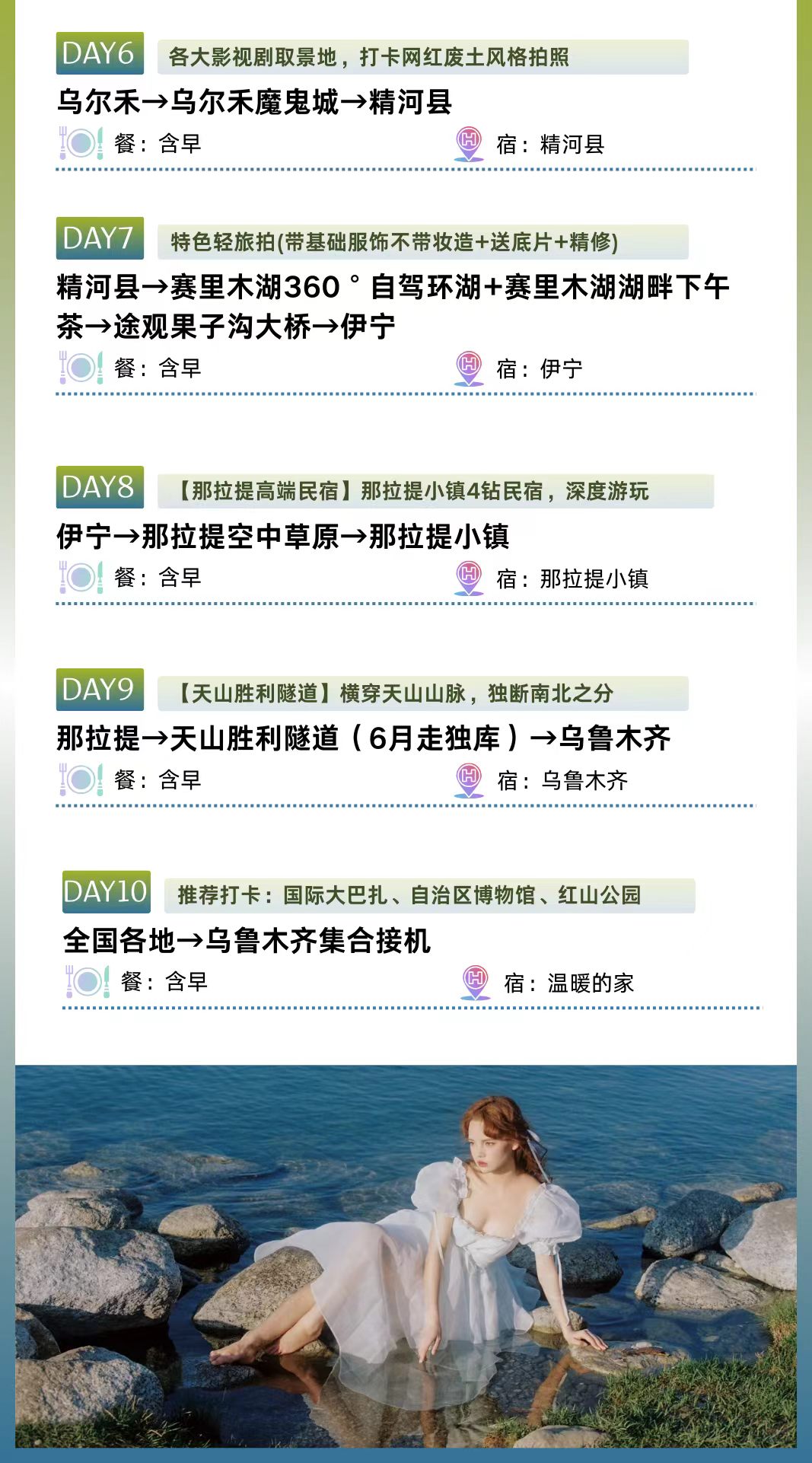 ⭐亮点10:【惊喜赠送:赛里木湖旅拍】免费赠送198元赛里木湖旅拍,带基础服饰(不带妆造)+精修照+底片全送,拍出你的美。